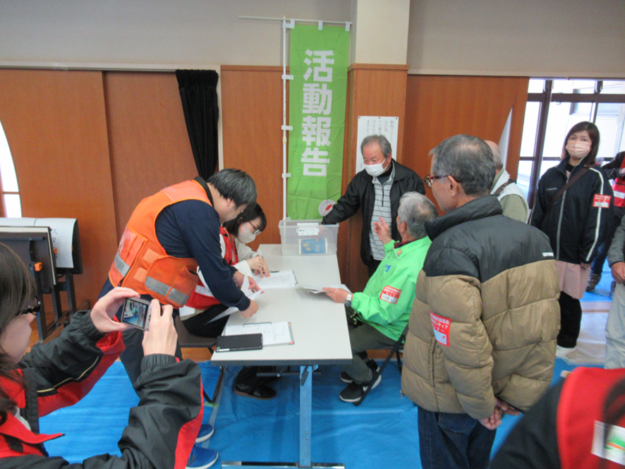 訓練では、実際の災害発生時を想定し、受付→オリエンテーション→グルーピング・マッチング→活動報告といった一連の流れを参加者の皆さんに実際に体験していただきました。「思ったより、流れが分かりやすかった」という声もあり、皆さんで確認しながら進めることができました。