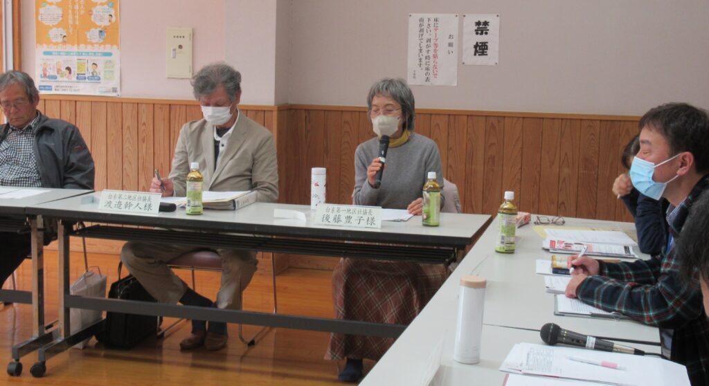 その後、前回の会議で寄せられた「他地区の活動を知りたい」「活動内容に悩むことが多い」といった声を踏まえ、今回は下名連石地区の取り組みについて、年間を通した活動内容をご紹介いただきました。